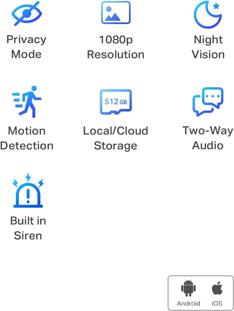 The TP-Link Tapo 1080P Indoor Security Camera delivers crystal-clear video, instant motion alerts, two-way audio, and night vision—making it an essential, flexible solution for monitoring babies, pets, and your home. Enjoy seamless integration with Alexa and Google Home, all backed by trusted TP-Link performance.