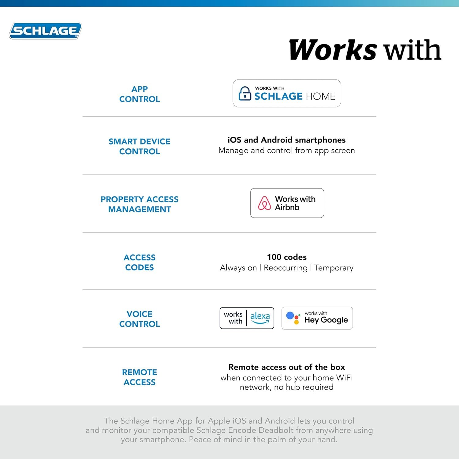 It’s fully Alexa compatible and works with Google Home when linked via the Schlage Home app. For native Apple HomeKit support, you’ll need to explore other models or use additional bridges. - How secure is the Schlage Encode?